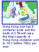 New container terminal number 10 to 15 (CT10 to CT15) will be constructed and will each add about 2.2 million TEUs per year to the total capacity when completed.
