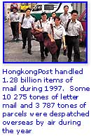 Hongkong Post is the Postal Authorities providing reliable, efficient and universal postal services at reasonable prices to meet the needs of Hong Kong and its international postal obligations. For more details about the Postage Rates and Services, you can obtain a leaflet at any post office, or telephone (852) 2921-2222 or visit the WebPage of the post office